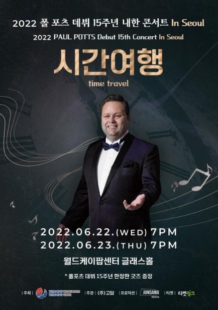 폴 포츠는 오는 22일과 23일 오후 7시 남산 월드케이팝센터 글래스홀에서 데뷔 15주년 기념 서울 콘서트를 진행한다.