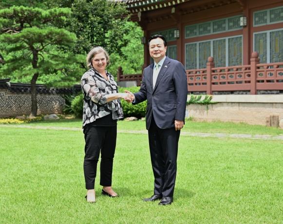 조현동 외교부 제1차관은 방한중인 '빅토리아 눌런드 (Victoria Nuland)' 미 국무부 정무차관과 7.27일 12:00-13:20 간 오찬 협의를 하고 △한미관계 △북한ㆍ북핵 문제 △지역 및 글로벌 현안 등 상호 관심사에 대해 폭넓게 의견을 교환하였다.