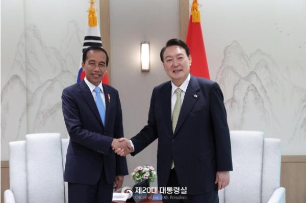 윤석열 대통령이 우리나라를 공식방문한 조코위 대통령과 첫 정상회담을 했다.