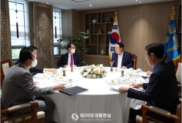 윤석열 대통령과 한덕수 국무총리는 9월 26일 주례회동을 가졌다.