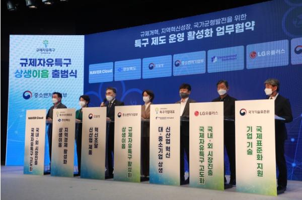 또한, 중기부는 특구에서 안전성이 입증된 제품·서비스의 시장 진출을 촉진하기 위해 조달청, 국가기술표준원, ㈜엘지유플러스, ㈜네이버클라우드 등과 ‘특구 상생이음 MOU’를 체결했다.
