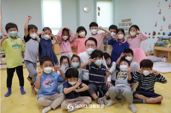 윤석열 대통령은 9월 27일 화요일, 세종시에 위치한 아이누리 어린이집을 방문하여, 보육실과 이야기 할머니 등 보육 프로그램을 참관하고, 학부모, 보육 교직원, 관련 전문가들과 간담회를 가졌다.