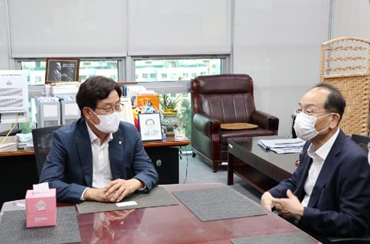 오늘, 더불어민주당 신동근 의원(국회 기획재정위원회 간사, 인천 서구을)은 이성해 대도시광역교통위원장(이하‘대광위원’장)을 만나 ‘서구 교통 사업 현안’들의 조속한 추진을 요구했다.