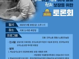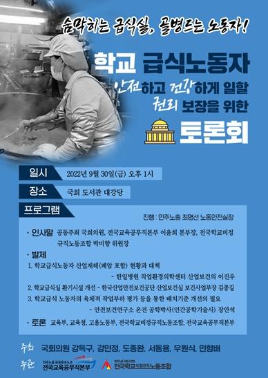 또한 내일(9월 30일) 학교급식노동자와 함께 개최하는 정책토론회에서 폐암을 포함한 급식실 산업재해 피해 현황을 살펴보고, 교육부, 고용노동부, 교육청, 노동조합 관계자와 함께 급식실 환기시설 점검 및 개선이 부진한 이유, 급식실의 인력충원을 위한 예산편성, 인력 배치기준이 마련 등 대책 방안을 논의할 예정이라고 밝혔다.