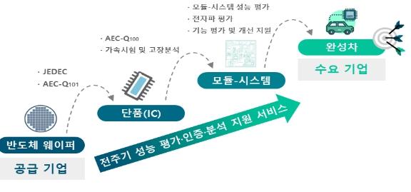 단품-보드-모듈 성능 평가 뿐만 아니라, 신차환경 조건 평가, 신뢰성 기술지원 및 자문 등 차량용 반도체가 웨이퍼 단계에서부터 완성차에 탑재되기까지 전주기에 걸친 성능ㆍ신뢰성 평가 및 개선 지원을 위해 3년간 250억원의 예산을 투입할 계획이며, 금년도는 30개社와 협약을 체결하여 133건의 성능평가 인증을 지원할 예정이다.