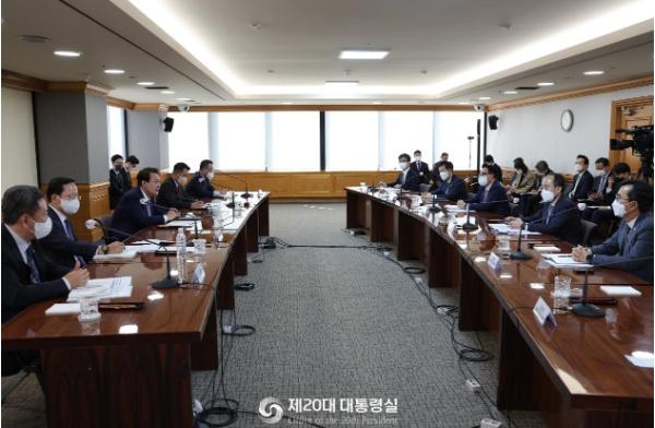 회의를 마치며 윤 대통령은 오늘 회의에 참석한 민간 전문가들의 생생한 의견에 감사를 표하면서, 위기일수록 정부와 기업의 소통이 더욱 중요하다는 점을 강조했다. 기업이 국내외 비즈니스 현장에서 느끼는 애로사항을 수시로 정부에 전달해 줄 것을 당부하며, 기업과 정부의 소통ㆍ협력 채널을 더욱 긴밀히 운영해 나가기로 했다.