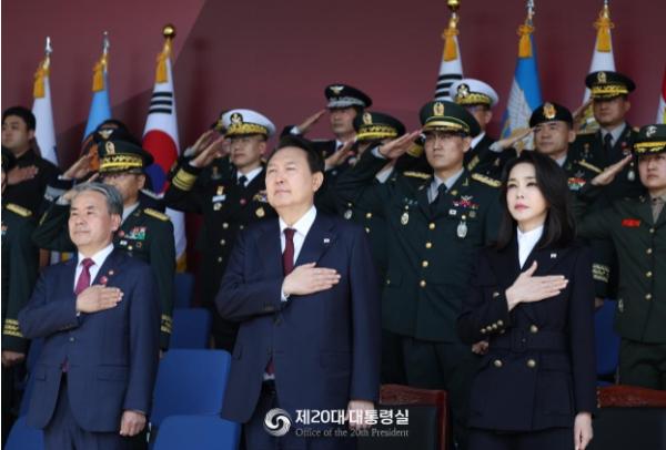 윤석열 대통령은 10월 1일 오전 육·해·공군 3군 본부가 위치한 계룡대에서 취임 이후 첫 국군의 날 행사를 주관했다. 행사에는 이종섭 국방부 장관을 비롯한 정부 및 국회 주요 인사와 군 주요직위자, 보훈·예비역 단체, 6·25전쟁 참전국 대사 등 4,600여 명이 참석했다.