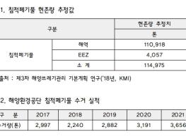 하지만 해양폐기물 정화사업 관련 2023년 예산안을 살펴보면, 전국 주요 59개 항만, 9개 환경관리해역, 30개 해양보호구역 등의 지속적인 침적쓰레기 수거를 위해 168억원이 책정되어 있으며, 수거처리 목표는 6,000톤에 그쳤다. 전체 침적폐기물 추정치 11만4,975톤의 5%에 불과하며, 주요 항만·해역 침적폐기물 수치의 절반에도 못미친다.