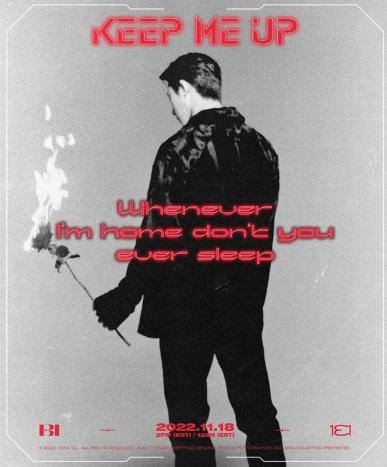 비아이(B.I)는 7일 0시 131레이블의 공식 SNS를 통해 새 EP 'Love or Loved Part.1 (러브 오어 러브드 파트 원)'의 타이틀곡 'Keep me up (킵 미 업)' 리릭 포스터를 공개했다.