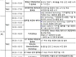 마지막날인 11월 11일에는 국가연구개발사업의 연구성과 중 하나인 표준 확산을 위해 표준개발 및 사업화, 표준특허 성공사례 등을 발표하고 정보통신기술(ICT) 표준화 전략을 공유하는 자리를 가진다.