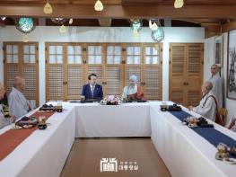 자승 스님은 “국민이 이해할 수 있도록 충분히 설명하는 유연함을 가져야 한다” 고 당부했고, 혜거 대종사는 “갈등을 딛고 화합을 이뤄 이 고비를 슬기롭게 극복하기를 바란다” 고 말했다.
