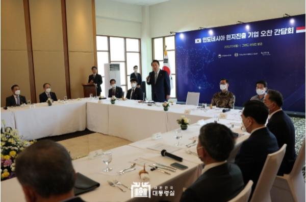 참석한 기업인들은 바쁜 순방 일정 가운데 현지 기업인들과의 자리를 만들어주셔서 감사하다는 말씀을 우선 전하며, 다양한 애로와 건의 사항들을 대통령께 전달했다. 내년 2023년도는 한국과 인도네시아가 수교 50주년을 맞이하는 뜻깊은 해이니만큼 K-POP 지원 등 정부에서도 각별히 관심을 기울여달라는 요청이 있었다. 인도네시아에 많은 지원기관들이 진출해 있는데 분산되어 지원하기보다는 통합된 합동센터를 만들어 정부 지원이 보다 효율적이 됐으면 좋겠다는 제안도 있었다.
