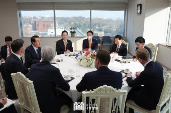 윤석열 대통령은 11. 17일, 한-네덜란드 정상회담에 앞서 15시 30분부터 용산 대통령실에서 우리나라 주요 반도체 기업인과 함께 마크 루터(Mark Rutte) 총리 및 ASML社의 피터 베닝크(Peter Wennink) 회장과 ‘반도체 기업인 차담회’를 가지고 반도체 산업 관련 주요 현안을 논의했다.