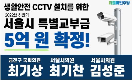 이번에 확정된 금천구 2022년 하반기 행정안전부 특별교부세는 △생활안전 CCTV 설치사업 5억 원이다.