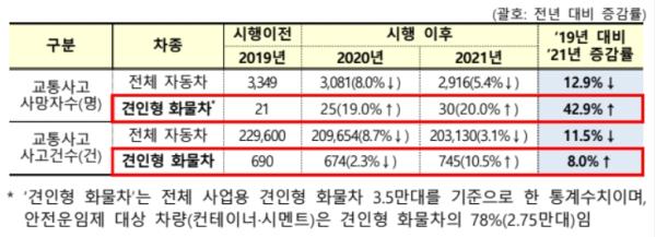 아울러, 컨테이너·시멘트 화물차 운전자의 근로여건을 지속적으로 개선할필요가 있다는 점 등도 종합적으로 고려했다.