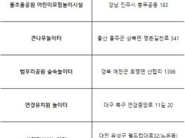 안전하고 모험적이며, 어린이들이 충분히 쉴 수 있는 올해의 우수 어린이놀이시설로 충남 서천군 국립생태원 생태놀이터 등 7개소가 선정됐다.