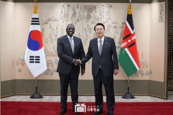 윤석열 대통령은 11.23일 용산 대통령실에서 한국을 공식 방문한 윌리엄 루토(William Ruto) 케냐공화국 대통령과 정상회담을 갖고 양국 간 교류 협력 강화 방안에 대해 의견을 교환했다.
