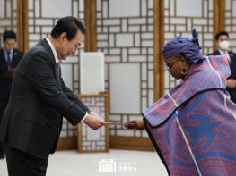윤석열 대통령은 11.23일 오후 대통령실에서 개최된 신임장 제정식에서 주한 비상주대사 6명으로부터 신임장을 제출받았다.
