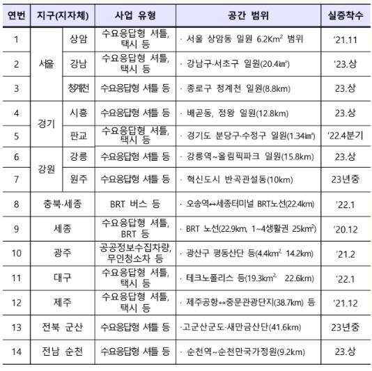 아울러, 대전의 경우 기존 지구(충북·세종)의 연장을 통한 장거리 자율주행 운송서비스가 BRT(간선급행버스체계) 서비스와 결합되어 적용될 예정이다.