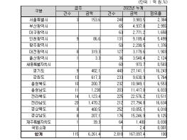 지역별로는 전라남도 1,470억 원, 충청남도 1,238억 원, 전라북도 1,123억 원, 그 밖의 지역이 2,430억 원이다.