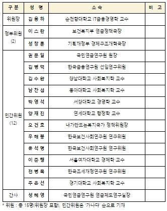 앞으로 재정안정화방안, 노후소득보장 방안, 국민연금-기초연금 재구조화 방안 등 논의과제를 구체화해나갈 예정이다.