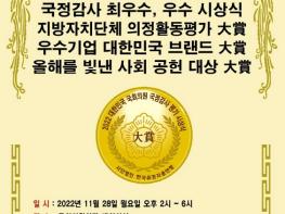 이날 시상식은 지방자치단체 의정활동평가 대상, 우수기업 대한민국브랜드 대상, 올해를 빛낸 사회공헌 대상으로 2022년을 빛낸 개인 및 단체, 기업에게 각각 대상이 주어졌다.