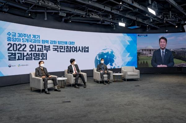 금번 결과설명회는 국민외교센터 공식 유튜브 채널을 통해 전국민께 생중계됐으며, 중앙아시아 및 공론조사 분야 전문가, 외교부 관계자 등은 현장 참석하고 일반 국민들은 비대면으로 실시간 참여할 수 있게 진행됐다.