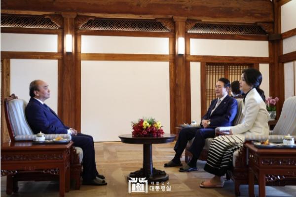 윤석열 대통령 부부는 12.6일 오후 청와대 상춘재(常春齋)에서 30여 분간 응우옌 쑤언 푹 베트남 국가주석과 친교 차담을 가졌다.