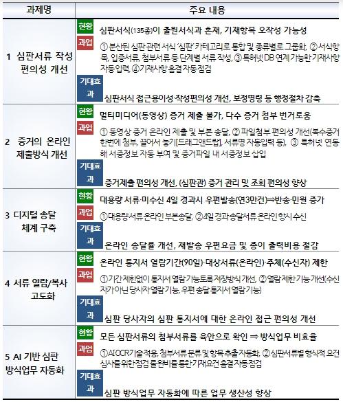 주요 추진 내용으로는,첫째, 심판서류 작성과 증거 제출을 보다 쉽게 할 수 있도록 지원한다.