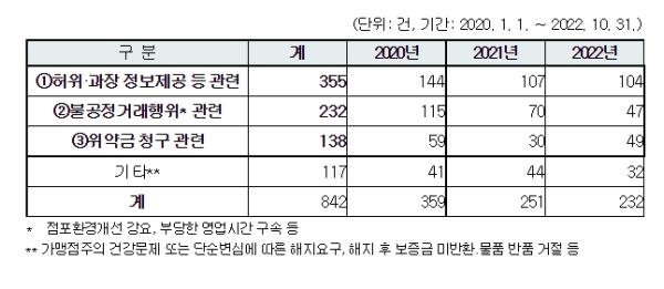 이에 조정원은 빈발하는 분쟁 주요 사례를 분석하여 가맹점주의 피해 예방 및 피해 구제에 필요한 유의사항을 안내했다.