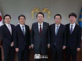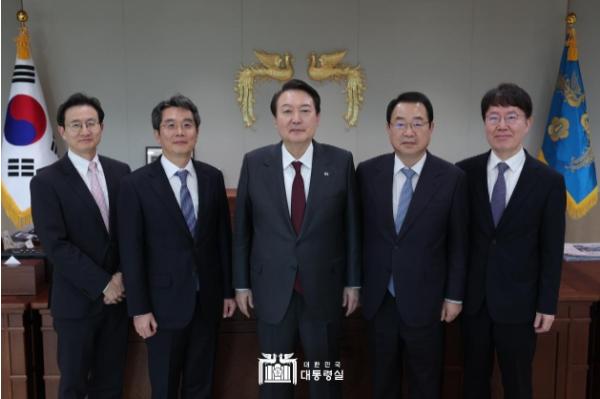 윤석열 대통령은 12.7일 대통령실에서 사단법인 한국법학교수회 정영환 회장(고려대 법학전문대학원 교수), 조홍식 차기 회장(서울대 법학전문대학원 교수) 등 임원진과 “대한민국 헌법 정신과 법치주의 확산 방안”, “대학 교육의 발전 방향”을 주제로 간담회 및 오찬을 가졌다.