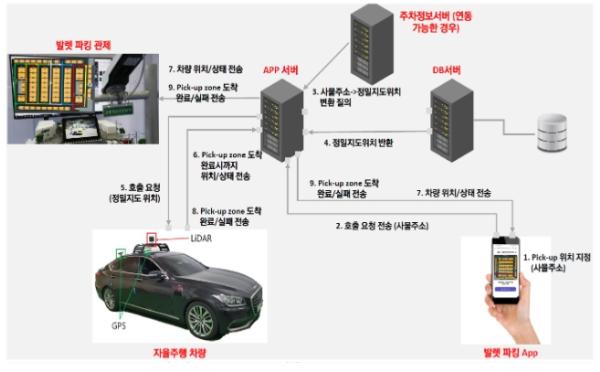 자율주행차 대리(발레)주차는 주차장 내 승강기 앞에 있는 승?하차 지점에서 운전자는 하차하고, ‘자율대리(발레)주차앱’을 통해 주차를 명령하면 자율주행차가 빈 주차 칸에 스스로 주차하게 된다.