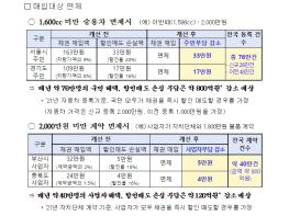 먼저, 1,000cc~1,600cc 미만 비영업용 승용차를 신규·이전 등록할 경우 지역개발채권·도시철도채권의 의무매입을 면제하여 사회 초년생, 신혼부부 등의 자동차 구매 부담을 완화하기로 했다.