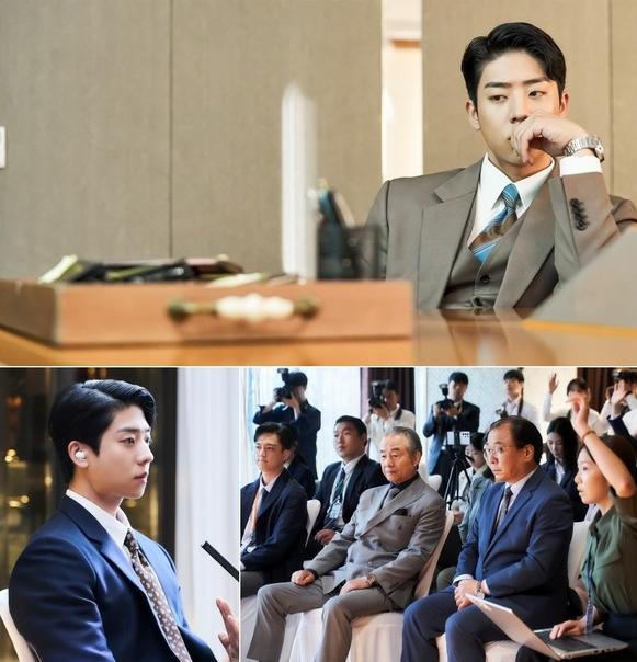 뜨거운 취재 열기 속 박인성의 모습도 포착됐다. 이는 ‘실버라이닝’이 눈엣가시인 범영 그룹 오영근(정동환 분) 부회장의 깜짝 선물. 쏟아지는 질문 공세 속 포커페이스를 유지하고 있는 박인성, 그리고 이를 예의주시하는 오영근 부회장과 그의 심복 곽삼수(김병춘 분) 상무의 대립이 긴장감을 자아낸다. 과연 박인성은 정체 탄로의 위기를 벗어날 수 있을지 이목이 집중된다.
