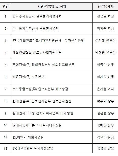 이날 참석한 참여기관 및 기업은 인니 수도이전사업 협력 및 진출에 관한 정보의 상호공유, 인적 네트워크 활성화, 민간 투자사업 공동발굴 및 맞춤형 참여전략 마련 등을 위해 상호협력해 나가기로 했다.