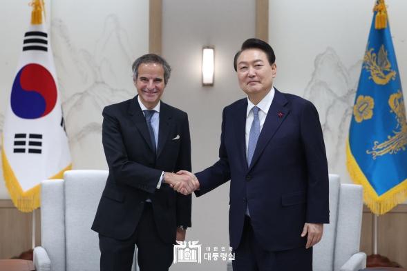 한편, 윤 대통령과 그로씨 사무총장은 우크라이나 자포리자 원전의 안전을 보장하기 위한 보호구역 설정과 국제사회의 제반 협력 문제에 대해서도 의견을 교환했다.