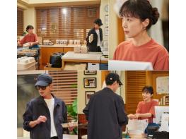손수 만든 반찬들을 가지런히 정리하고 있는 남행선과 머리끝부터 발끝까지 블랙 컬러로 무장한 걸로도 모자라 선글라스까지 끼고 ‘국가대표 반찬가게’를 찾은 최치열. 두 사람 사이를 가득 메우고 있는 것은 모두가 예상했던 핑크빛 텐션이 아닌, 서로를 향한 경계심으로 차 있어 더욱 흥미롭게 다가온다.