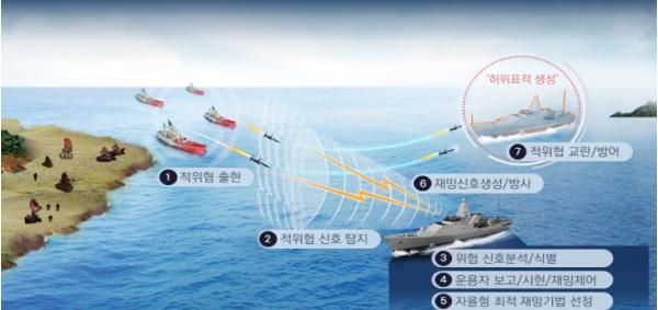 함정용전자전장비는 적의 무기체계를 물리적으로 파괴하는 하드킬 방식과 달리 소프트킬 방식으로 대응한다. 적의 레이더나 대함유도탄 탐색기의 전자파 정보를 탐지하고 식별하여 전자적인 교란과 기만 공격을 통해 무력화함으로써 우리 해군 함정을 보호하는 방어 장비이다.
