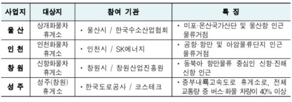 화물차용 수소충전소 구축 사업은 “2050 탄소중립 시나리오(‘21.10)”, “수소경제 이행 기본계획(‘21.11)”“탄소중립 녹색성장 추진전략(‘22.10) 등에따른 수소화물차의 공급·확산을 대비한 사업으로,국토교통부는 화물차휴게소, 차고지, 항만 등 주요 물류거점에 대형화물차(11톤급)용 수소충전소를 매년 2개소씩 구축을 추진하여, 현재 인천, 울산, 창원, 성주에서 충전소를 구축하고 있다