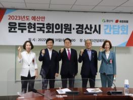 국민의힘 윤두현 국회의원(경북 경산시)은 2023년 정부 예산안에 경산시 지역경제를 견인할 국비 예산 2,505억원이 최종 확정됐다고 밝혔다. 이는 2022년 1,651억원 대비 854억원이 늘어난 규모로 경산시 주요사업 국비가 역대 최대로 반영된 성과이다.