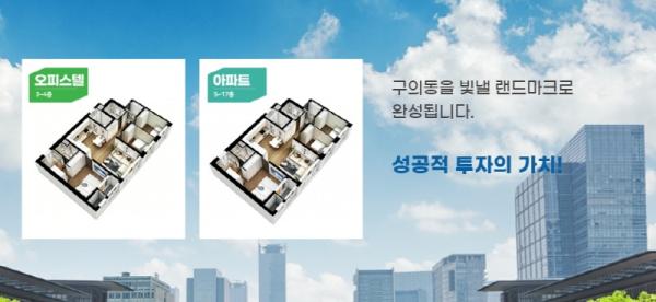 오피스텔은 공급면적 111.㎡(33평형)의 A1타입, 121.㎡(36평형) B1타입, 122.㎡(37평형)의 C1타입이 있다.