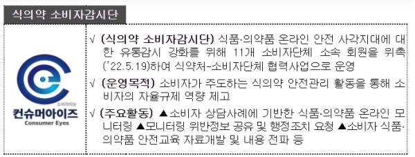 이번 컨슈머아이즈는 맘카페(19개), 중고거래플랫폼(5개), 라이브커머스(10개)를 중심으로 허위?과대 광고 등 식의약 제품에 대한 모니터링('22.6.1.~8.24.)을 실시했으며, 위반사항에 대해 식약처와 한국소비자단체협의회가 공동으로 신속하게 대응?조치했다.