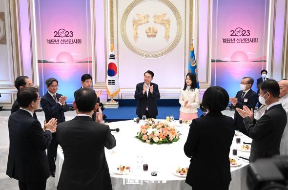윤석열 대통령은 1. 2일 서울 코엑스에서 개최된 ?2023년 경제계 신년인사회?에 참석했다.
