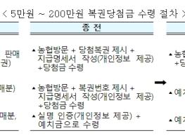그간 5만원 ~ 200만원 사이 당첨금 수령을 위해서는 주민등록번호 등 과세를 위한 개인 정보를 제공(지급명세서 작성)해야 했으나, 금년부터는 이러한 복잡한 절차 없이 곧바로 은행을 방문하여 당첨금 수령 가능하다.