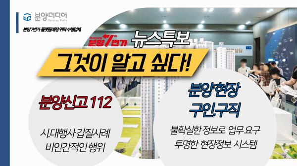 분양을 하다보면 미지급 수수료부터, 오랜 사전 영업을 시키면서 법률적인 문제들이 발생하는데 해결이 쉽지 않다.이러한 어려움을 속시원히 이야기 할곳도 없는게 현실인데 분양미디어에서는 이러한 어려움을 해결하는데 조금이나마 도움을 주기위해 “분양신고112”를 운영할 계획이다.