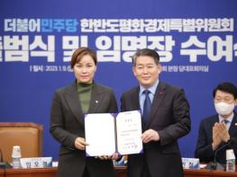 경기 광명갑 임오경 국회의원이 1월 9일 더불어민주당 한반도평화경제특별위원회 부위원장으로 임명됐다. 더불어민주당은 이날 오전 이재명 대표가 참여한 가운데 한반도평화경제특별위원회 출범식을 개최하고 임명장 전달식을 가졌다.