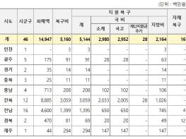 중앙재난안전대책본부는 복구비 지원규정에 따라 재산피해액과 복구비를 신속히 산정하여 지원하되, 곧 다가올 설 연휴를 고려하여, 지자체에서 사유시설 피해 지원금을 신속히 先 지급하도록 하고, 피해 지역 주민 모두가 대설피해를 복구하고 일상을 회복할 수 있도록 할 계획이다.