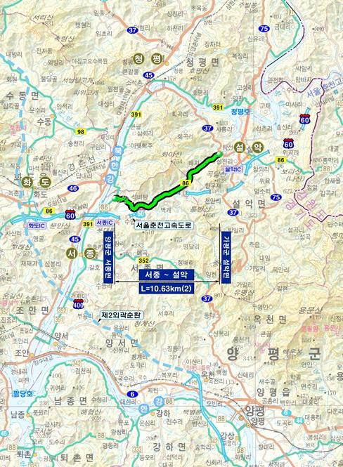 ‘양평 서종-가평 설악 국지도 개량 사업’은 총사업비 1,108억원이 투입되어, 경기도 양평군 서종면 수입리부터 가평군 설악면 희곡리를 연결하는 10.6km 2차로의 선형을 개량하는 사업이다.