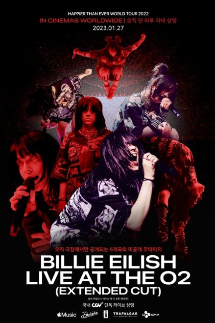 오늘(18일) 유니버설뮤직 측에 따르면 영국 런던 공연장 O2 아레나에서의 공연 실황을 담은 콘서트 필름 ‘빌리 아일리시 : 라이브 앳 디 오투(Billie Eilish Live At The O2) (확장판)’이 오는 27일 단 하루 동안 전국 CGV 33개의 상영관에서 열린다.