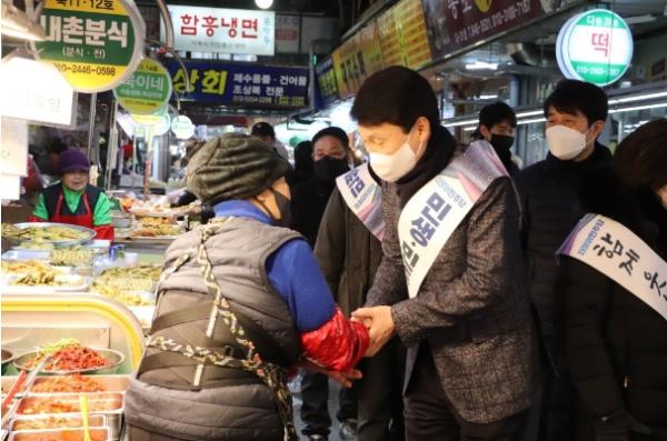김 의원은 제일시장 상인들과 물건을 구매하러 온 시민들과 간식거리를 먹으며 새해 인사를 전하기도 했다.